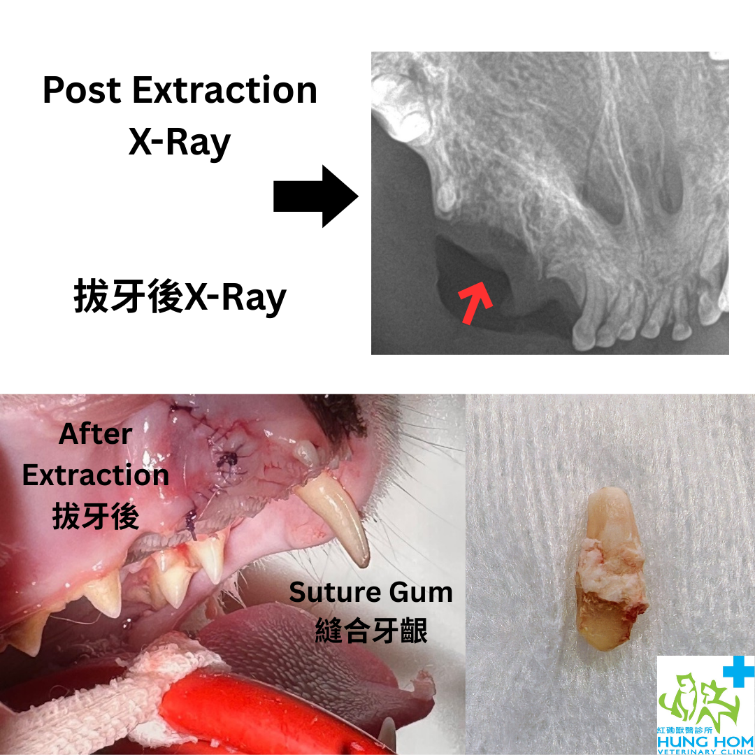 If the broken canine isn’t extracted soon, bacterial infection may set in, leading to root inflammation and abscess formation!
